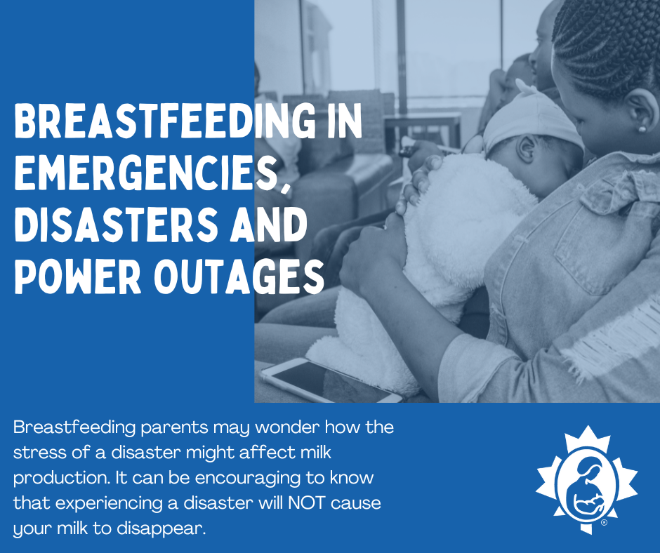 Power outages happen regularly in Canada in both summer and winter. They can last for hours or several days. If you are feeding your baby directly at the breast, then a power outage should not impact breastfeeding at all.