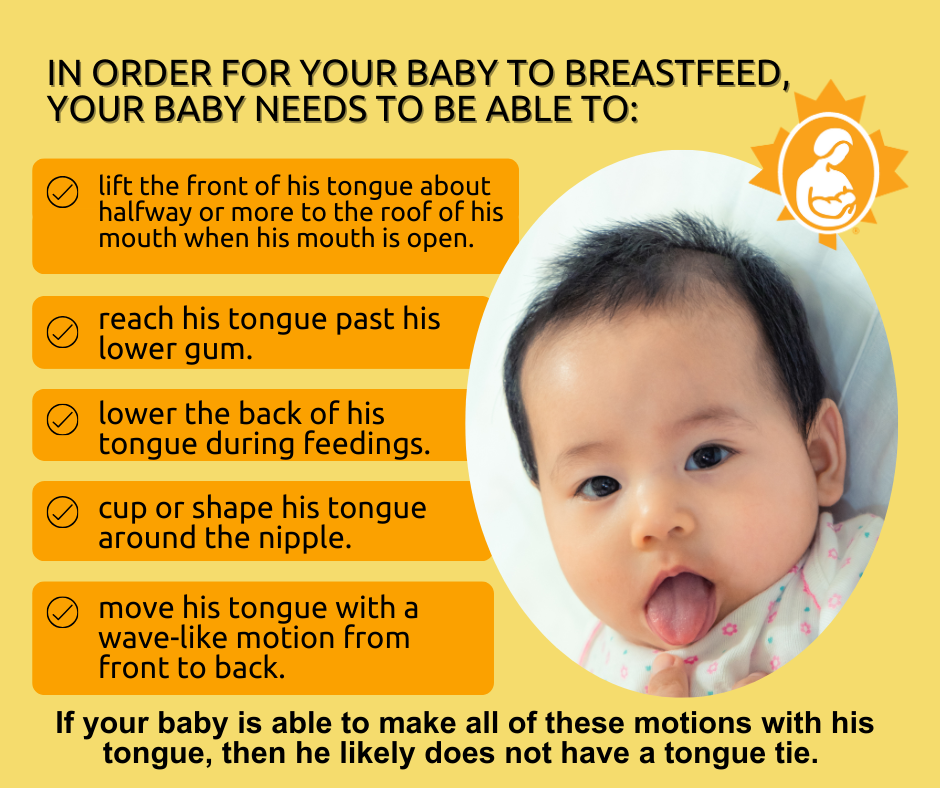 If your baby is able to make all of these motions with his tongue, then he likely does not have a tongue tie.